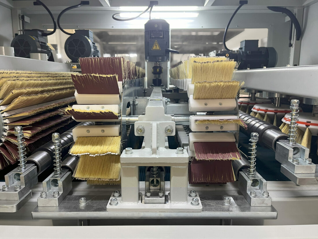 Wood preparation equipment, including sanders and cleaning units, ensures that materials are smooth, clean, and ready for further processing.