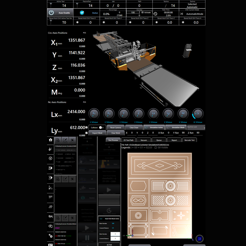 Following machining, the automatic unloading system and four-zone vacuum control ensure parts are removed efficiently and safely. Supported by an 8-position automatic tool changer and automatic tool length measurement, the line delivers consistent, repeatable output with reduced downtime between jobs.
